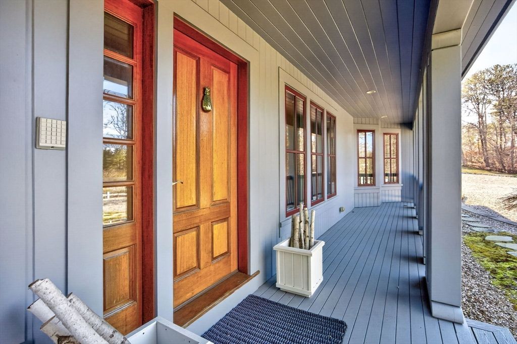 This exceptionally-crafted residence on 2.04 acres offers 4,800 square feet of luxury throughout. Beautifully appointed living spaces include a great room, living room, and sunroom - each with elegant architectural details. The gourmet Chefs kitchen is perfect for grand entertaining or everyday living. Luxurious primary suite offers private sitting room, 2 walk-in-closets, and a spa-inspired bath. Four additional en-suite BRs ensure comfort for family & guests. French doors open to an expansive deck and serene outdoor spaces. Designed with both comfort and sustainability in mind, the home features 67 owned solar panels, whole-house generator, natural gas heat, radiant heat in all tile floors, and Central A/C. Additional features include 2 fireplaces, outside shower, 3-car garage, shed w/electricity, and ample parking. Centrally located near Ryders Cove and Chathams vibrant downtown, this remarkable property offers a rare combination of privacy, space, and coastal sophistication.